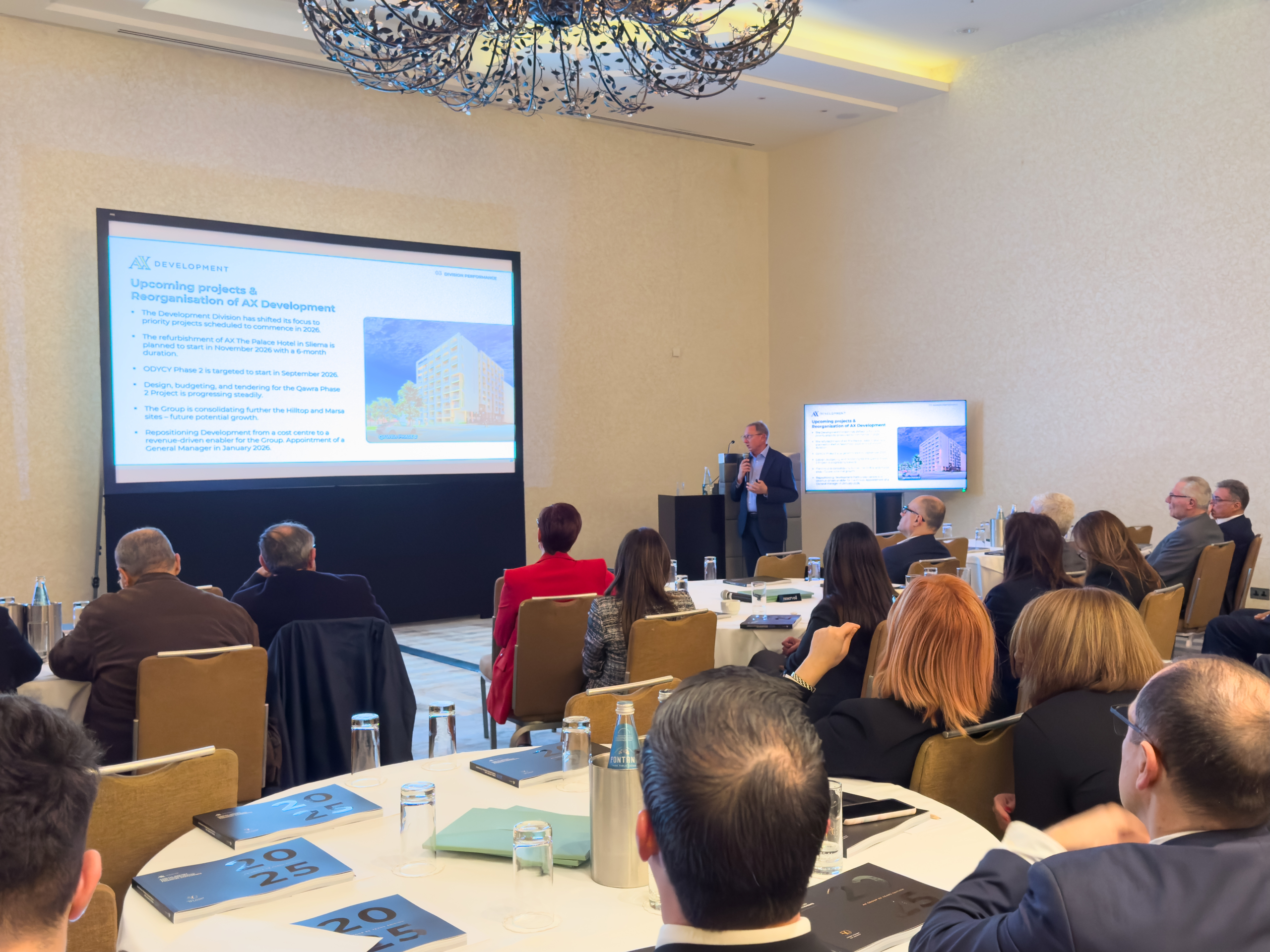 Mar 20, 2026AX Group hosted its annual stakeholder presentation at AX The Palace in Sliema, bringing together stockbrokers for a review of the group’s financial performance and strategic direction for the year ending 2025. CEO and Deputy Chairman Michael Warrington led the session, presenting results that reflected another year of strong performance driven by disciplined capital allocation and a focus on long-term value creation.