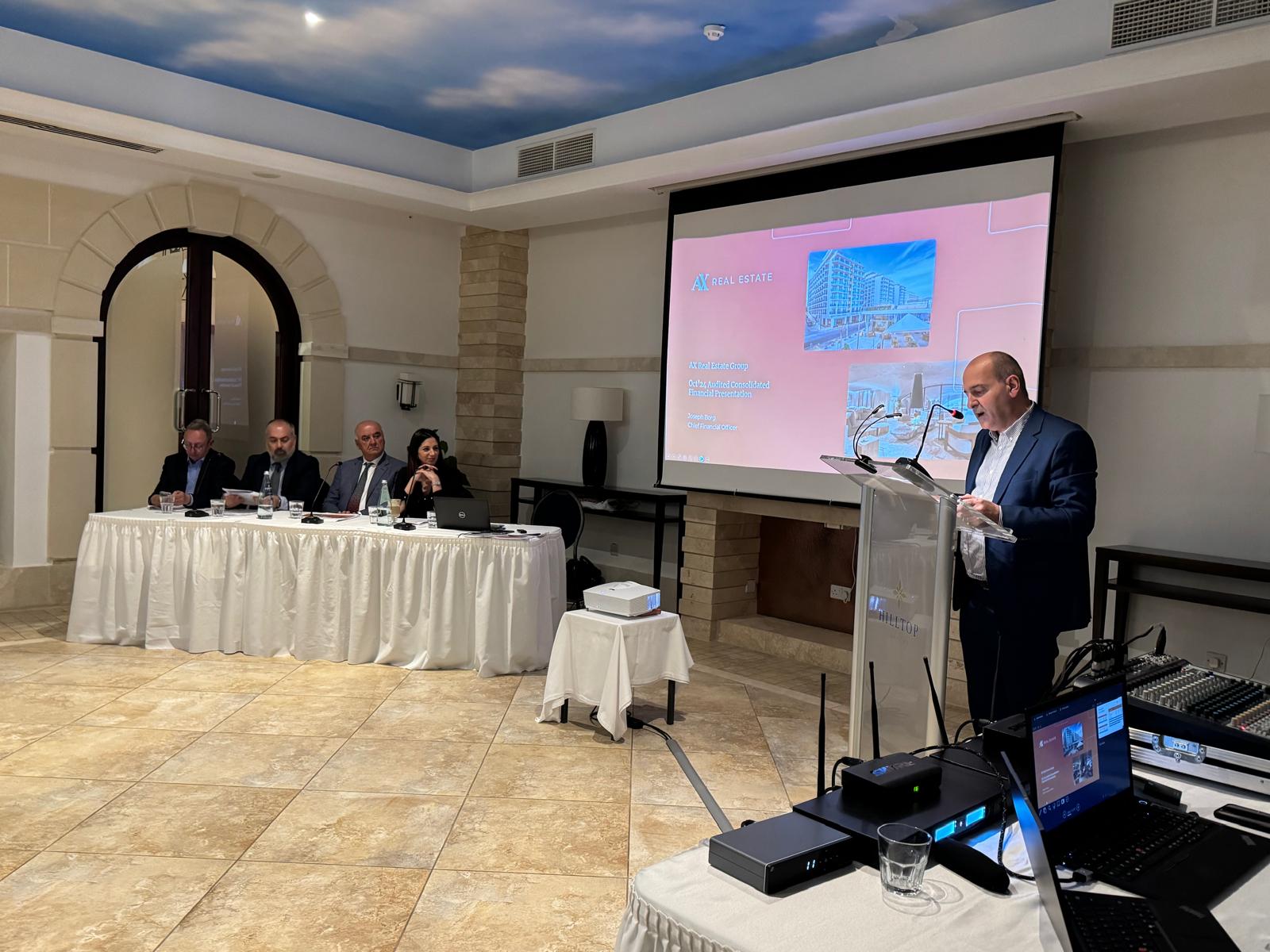 Apr 30, 2025AX Real Estate plc recently held its Annual General Meeting, during which key updates and strategic insights were presented to shareholders. Group Chairman Mr Angelo Xuereb opened the meeting with a detailed overview of the Group’s recent milestones. He highlighted the exceptional success of AX ODYCY, which has exceeded expectations and received prestigious awards recognising its design and construction. Mr Xuereb also shared updates on the Verdala Wellness Hotel, underlining its architectural precision and the meticulous operational planning driving the project forward. Looking ahead, he outlined the next phase of the Qawra project, which includes the redevelopment and transformation of the Sunny Coast Aparthotel, Lido and Luzzu Complex.